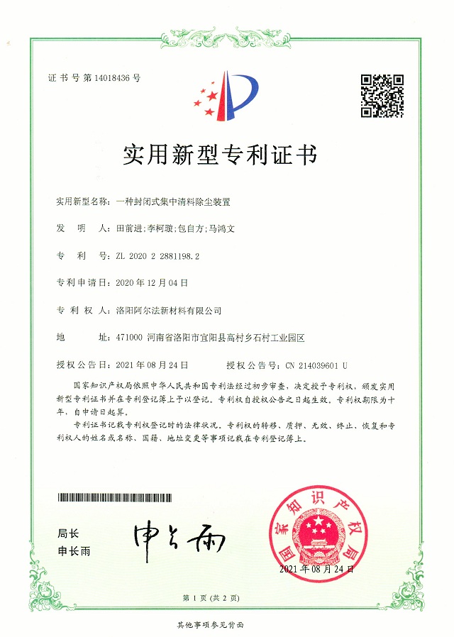 ***證書 發(fā)布時間:2019-12-23來源:洛陽阿爾法新材料有限公司點擊:5582 上一篇:檢驗報告 下一篇:職業(yè)病危害評價報告 分享到:0 用手機看 拍下二維碼,信息隨身看 試試用微信掃一掃,在你手機上繼續(xù)觀看此頁面。